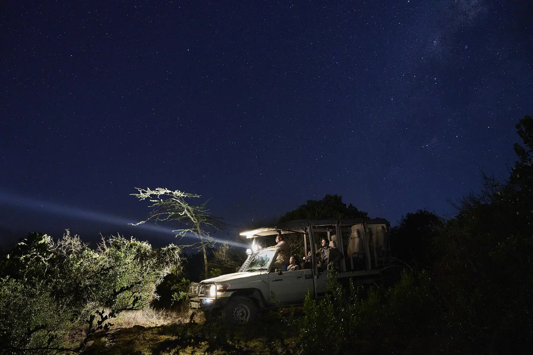 A nearby waterhole attracts impala, elephants, and mongoose to the camp, and it is not uncommon for lions and leopards to lurk close by, in search of prey. Start each day with a champagne breakfast, discover wildlife and the charm of quiet safari luxury, and end your day dining underneath the clearest night skies in Africa.