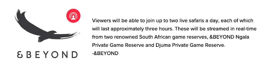 One of the quick thinking developments of the travel lockdown has been livestreams. Many people have told us that although they never watched livestreams prior to the pandemic, they will in fact now make a habit of watching livestreams even when they can travel again. This speaks to the impact it can have to enjoy a game drive from the comfort of your couch with a coffee in your hand, before you start your day's work.