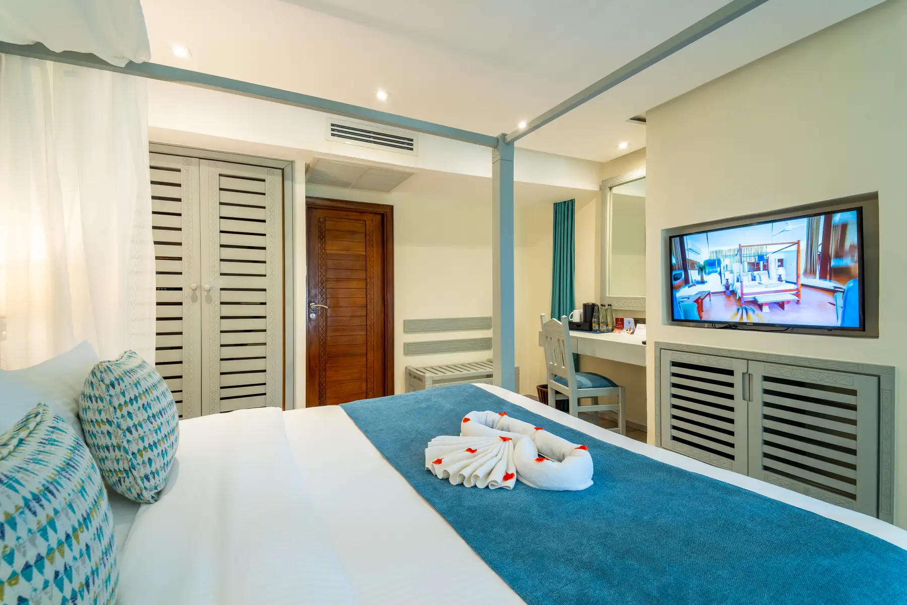 Designed with luxury in mind, the resort offers a variety of rooms and suites each featuring air-conditioning, an en-suite bathroom and private balcony or terrace.The resort is perfect for every traveller seeking a beachfront stay.