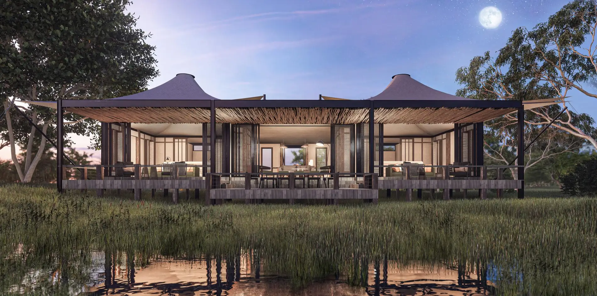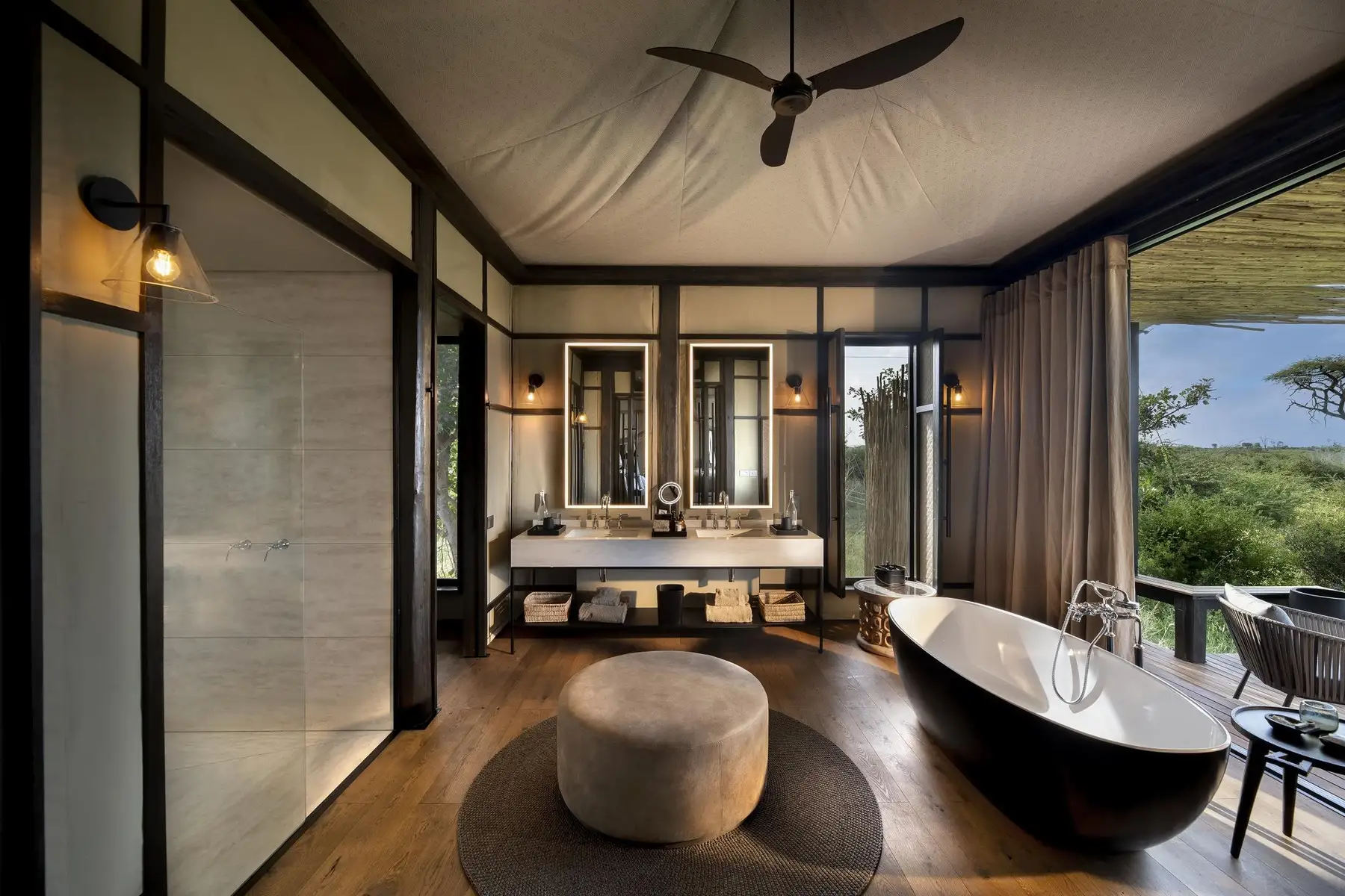 These suites are defined by light, space, and a contemporary interpretation of the classic safari tent. Expansive glass walls ensure the Delta remains a living panorama, visible from the comfort of your bed or private deck. All suites are equipped with air conditioning for year-round comfort.