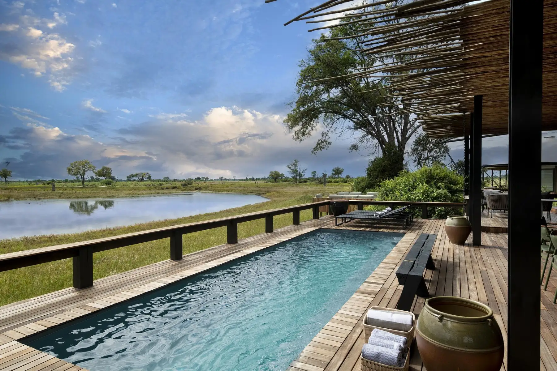 Daunara is situated on a secluded lagoon in the heart of the Okavango Delta. Positioned on the threshold of a permanent water body, the camp serves as the best vantage point for those seeking either adventure or retreat from the modern world. This sanctuary is designed to facilitate a reconnection with nature in its most authentic and pristine state.