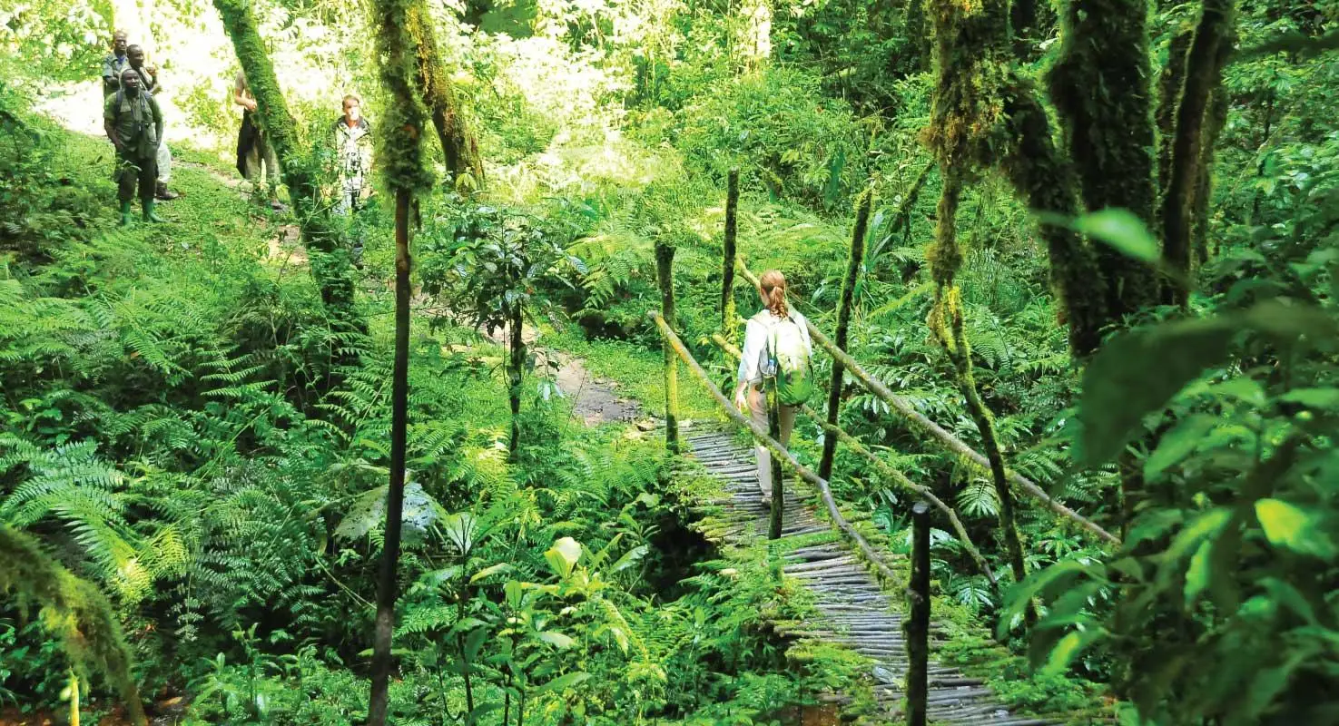Each encounter is different and has its own rewards, but you are likely to enjoy the close view of adults feeding, grooming, and resting, while the youngsters frolic and swing from vines in a delightfully playful display. After tracking, transfer back to your lodge for dinner and an overnight stay.