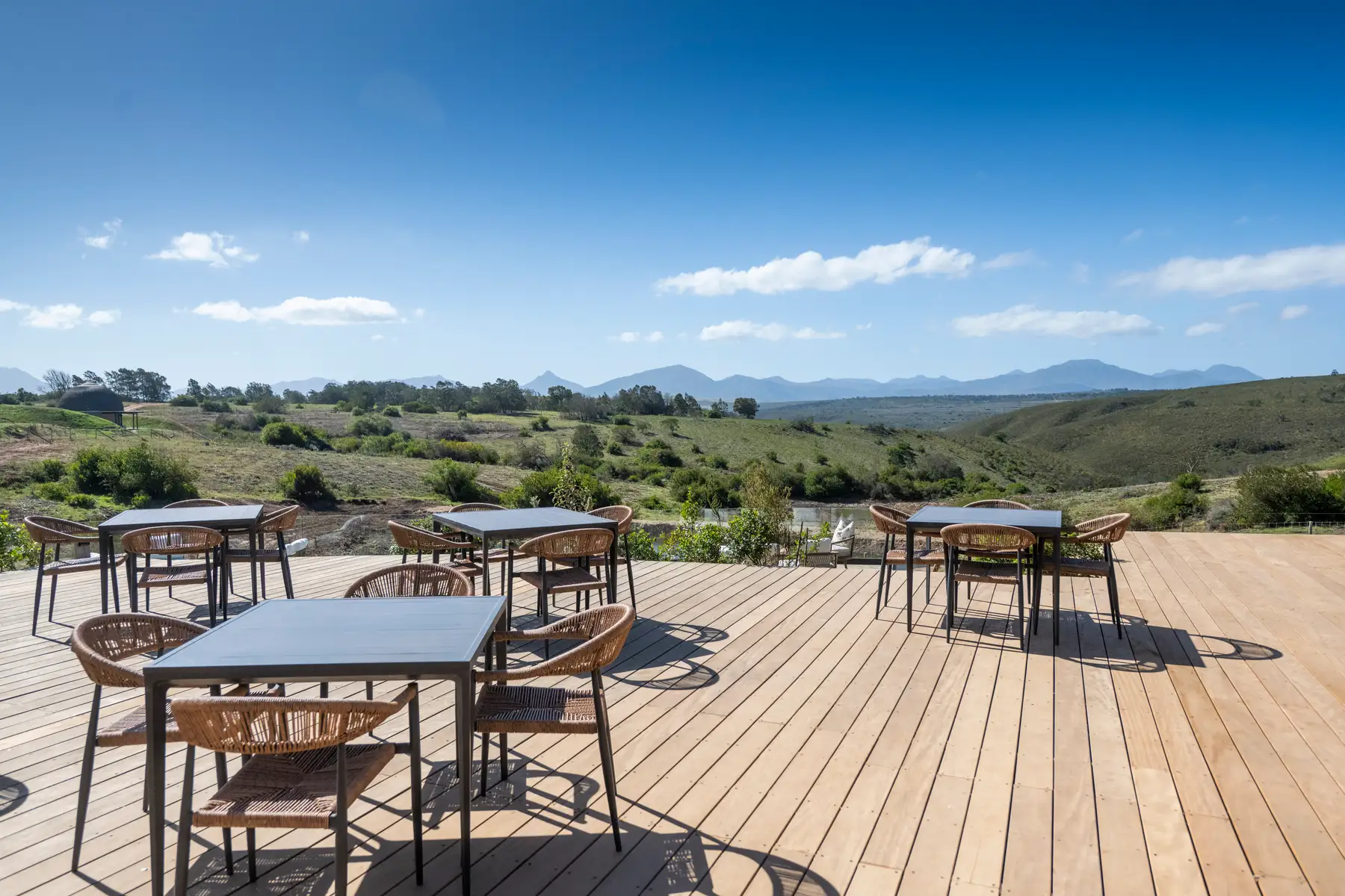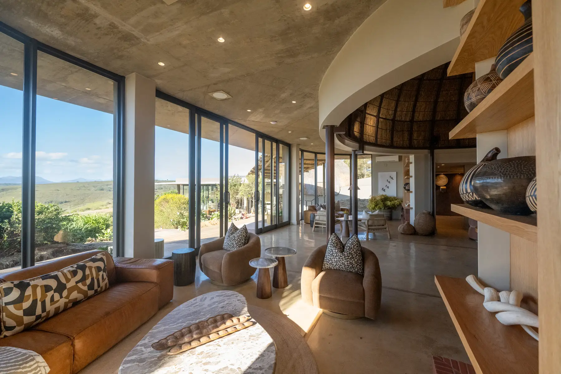 Your luxury safari getaway begins with a scenic road transfer from Cape Town to the Karoo, known for its wide-open landscapes and rugged beauty. Upon arrival at Kwena Lodge, you’ll settle into your stylish suite with filtered spring water, tea, and coffee at your fingertips. After a relaxed lunch on the deck, enjoy the lodge’s tranquil setting before heading out on your first afternoon game drive. Keep an eye out for giraffe, antelope, elephants—and if you're lucky, one of the elusive predators. Return to the lodge for sundowners and a gourmet dinner under the stars, followed by turndown service and a peaceful night in the bush.
