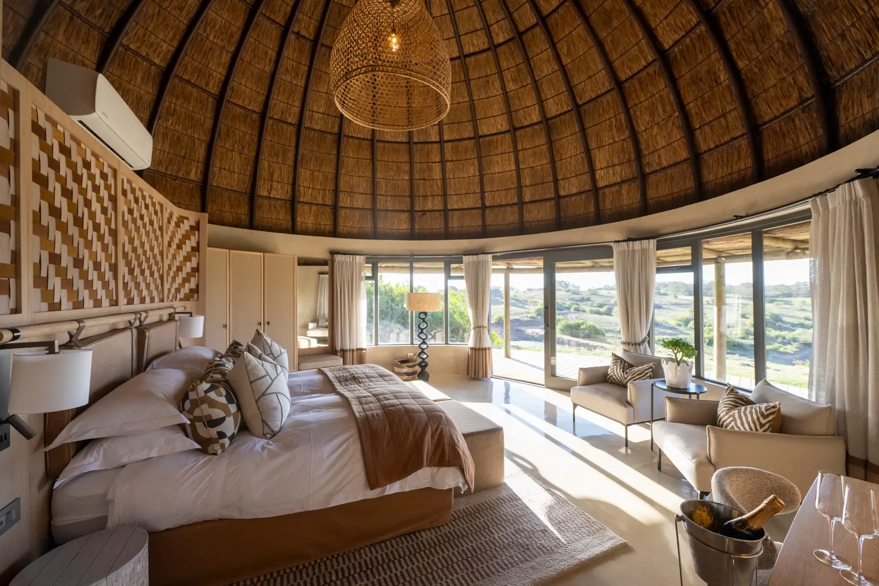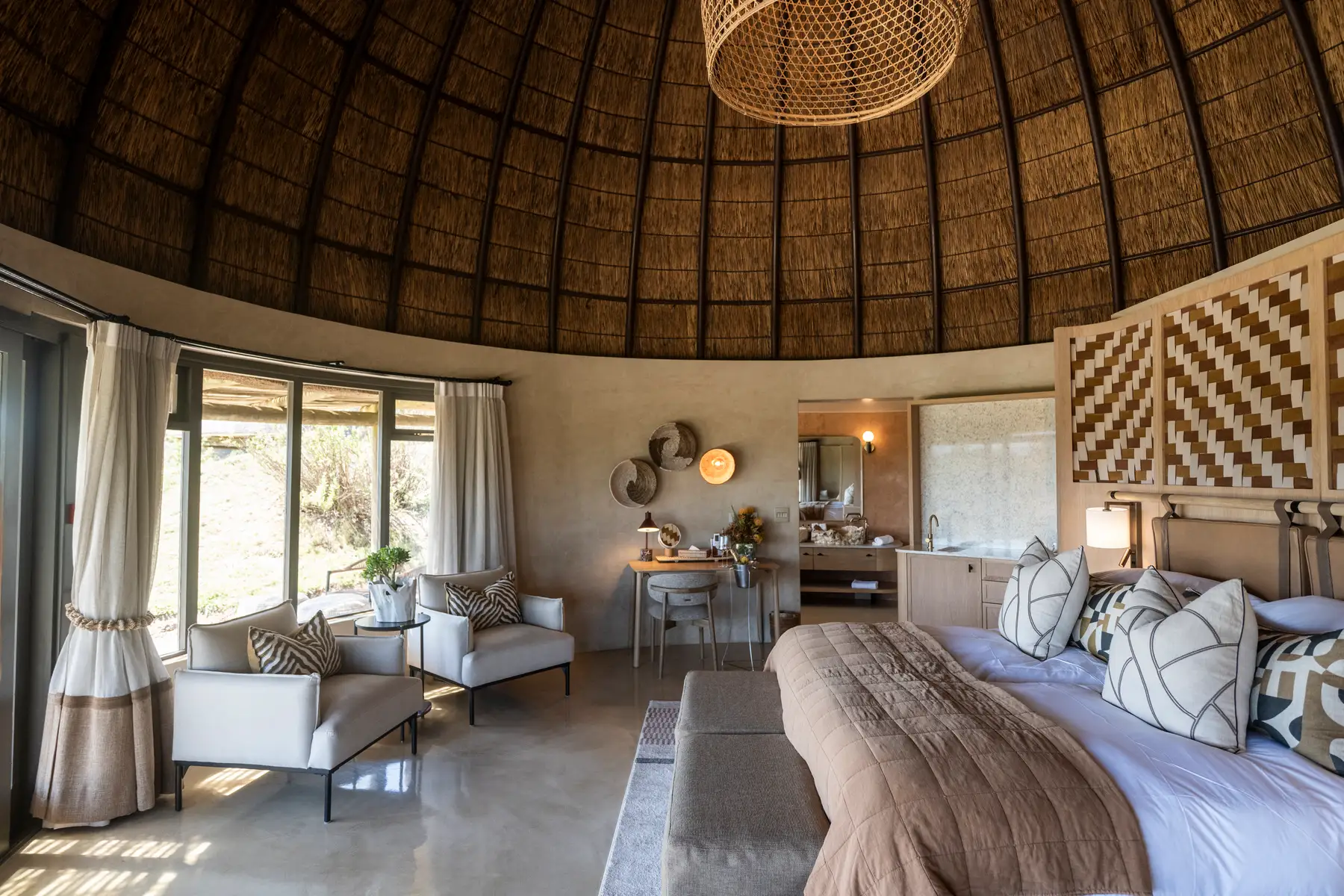 Start your day with fresh coffee and the sounds of the African bush before heading out on a sunrise game drive—one of the best times to spot active wildlife in golden morning light. After a hearty breakfast back at Kwena Lodge, spend the morning at your leisure: take a dip in the pool, enjoy a quiet walk, or simply relax with a view. A fresh, seasonal lunch is served midday, followed by your second guided game drive in the afternoon. Led by expert rangers, you’ll explore more of the reserve and its incredible wildlife. Return in the evening for sundowners and a gourmet dinner, before retreating to your suite for a restful night.