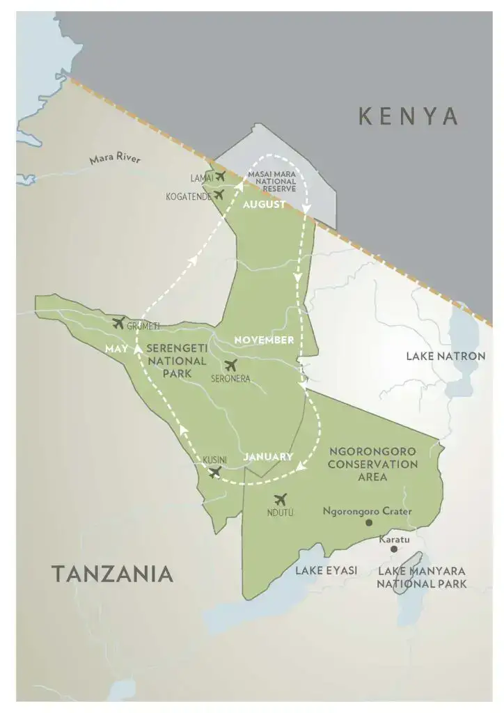 While the migration follows a general annual rhythm, routes and timing vary each year depending on rainfall. This natural unpredictability is part of the magic, and why expert safari planning is essential.